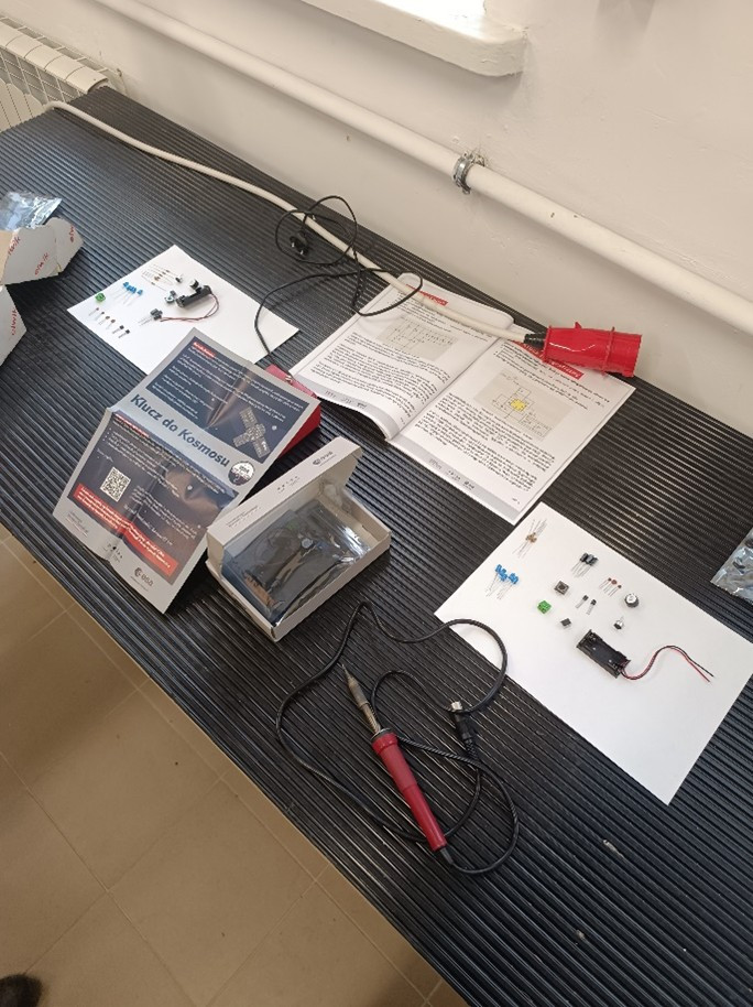 Dodatkowo uczestnicy otrzymali szczegółową instrukcję montażu, zawierającą opis działania całego układu oraz funkcji poszczególnych komponentów. Do dyspozycji była również stacja lutownicza, dzięki czemu zajęcia miały charakter w pełni praktyczny.