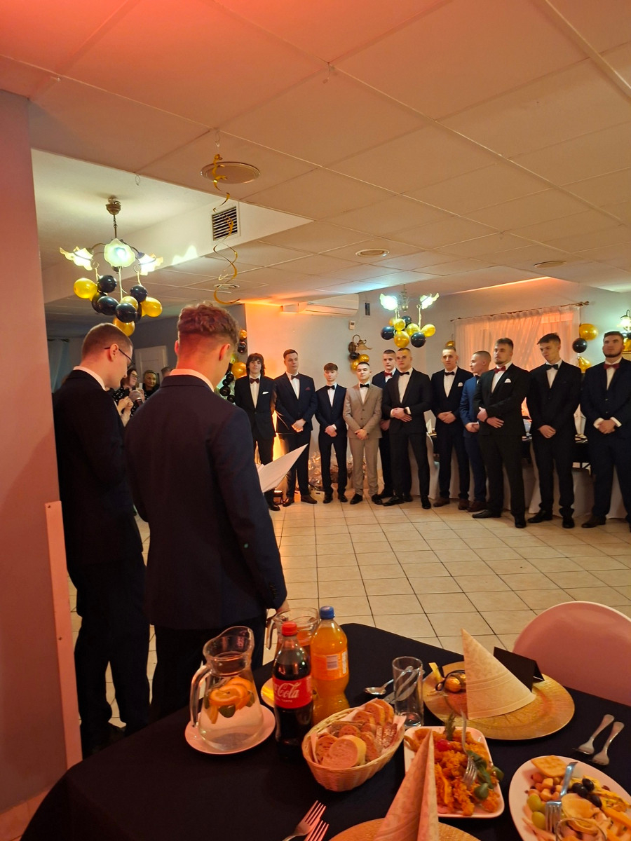 W piątek 13.02.2026 r. swoją STUDNIÓWKĘ zorganizowali uczniowie klas maturalnych. O godz.20.00 melodia poloneza wypełniła salę balową, a oni - uśmiechnięci i szczęśliwi – wyszli na parkiet, by tanecznym krokiem rozpocząć symboliczne odliczanie stu dni do matury.
