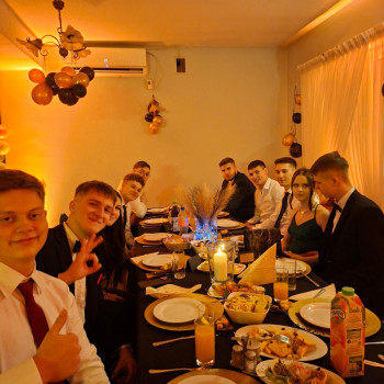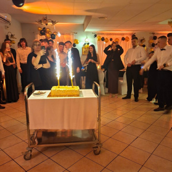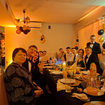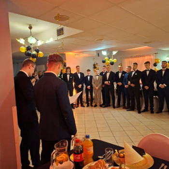 Nie zapomniano o podziękowaniach dla Dyrekcji, wychowawców oraz rodziców, których ta uroczystość była wspólnym przedsięwzięciem. Wyjątkowy charakter wieczoru podkreślił uczeń klasy 3at, Oskar Chabiera, który uświetnił zabawę grą na akordeonie. O północy wszyscy zebrani mogli spróbować tortu z logo szkoły, przygotowanego przez jedną z „naszych” wspaniałych mam.