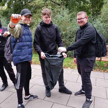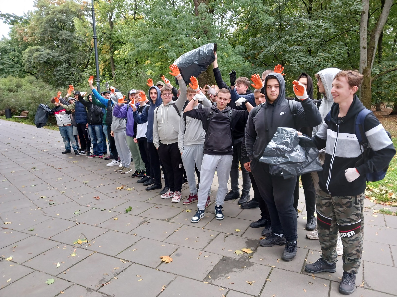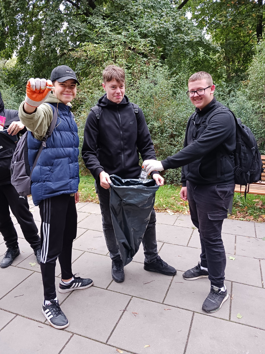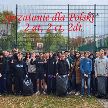 W dniu 04.10.2023 r. uczniowie klas 2at, 2ct, 2dt pod opieką wychowawców (pani Anny Rozłuckiej, Anny Pogorzelskiej i Piotra Chamery) wzięli udział w akcji „Sprzątamy dla Polski”. Celem przedsięwzięcia jest kształtowanie postaw proekologicznych, odpowiedzialności społecznej, patriotyzmu oraz troski o środowisko naturalne Polski i Naszej Małej Ojczyzny - Naszej Szkoły.